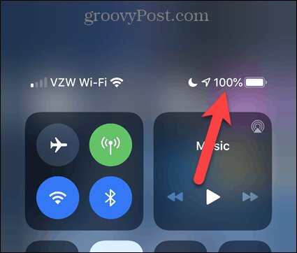 - بعد ذلك سوف تجد النسبة المئوية للبطارية أعلى يمين مركز التحكم، ويمكنك إغلاق مركز التحكم مرة أخرى من خلال سحب الشاشة لأعلى أو الضغط على الشاشة.