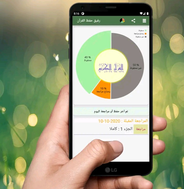 يمكنك عبر هذا البرنامج تسجيل المقاطع التي حفظتها ويمنحك البرنامج رده في شكل إحصائية تتضمن نسبة حفظ ونسبة ما يحتاج للمراجعة منه، ويذكرك بآخر موعد حفظت فيه من كتاب الله.