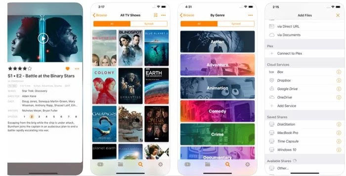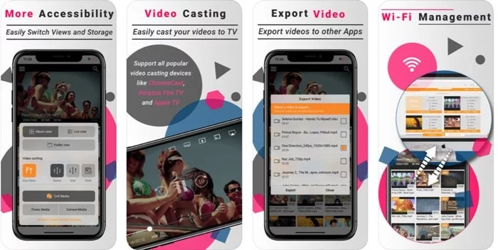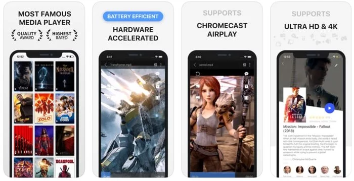 يعد من التطبيقات القادرة على تشغيل جميع الصيغ الخاصة بملفات الفيديو من دون الحاجة إلى استخدامك للبرامج الخاصة بتحويل الصيغ، ويتميز التطبيق بتصميمه المميز والجذاب، ومن أكثر التطبيقات التي تمتلك شعبية بين أغلبية المستخدمين بالإضافة إلى أنه من الممكن أن يتزامن مع iCloud وGoogle Drive Itunes وOne Drive ، ويعمل على تشغيل مقاطع الفيديو المخزنة عليها وكذلك فهو يدعم كافة الصيغ الخاصة بملفات الترجمة، بالإضافة إلى أنه يدعم استخدام الإشارات للتحكم فى الفيديوهات أثناء عرضها، ومن الممكن أن يتم قفل هذا التطبيق من خلال استخدام رمز مرور الهاتف أو Touch ID.