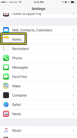 • أولاً عليك تفعيل الخيار الخاص بإغلاق الملاحظات في داخل التطبيق، ومن ثم قم بالانتقال إلى الإعدادات settings وبعدها إلى ملاحظات Notes.