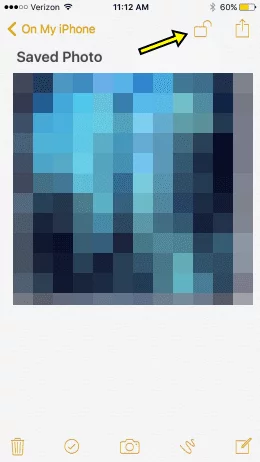 • عليك القيام بالرجوع إلى تطبيق الملاحظات ثم قم بفتح الملاحظة التي تحمل الصورة، وبعدها قم بالضغط على رمز القفل الموجود في الأعلى.