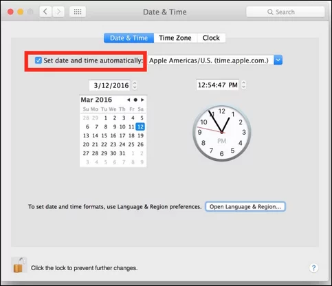 كما قلنا السبب الرئس هو إيقاف التشغيل لفترة من الوقت ومن ثم إعادة تشغيلة وسبب أخر هو إنقطاع الإنترنت لفترة طويلة من الزمن مما يتتسبب في عدم قدرة النظام علي تحديث الوقت والتاريخ تلقائيا من الإنترنت ،لكن الحل الاكثر سهولة يتمثل في نقل إلى Apple للإصلاح ، أو ببساطة للتأكد من اتصال Mac بالإنترنت .