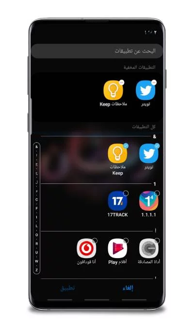 - سوف تجد في أعلى الشاشة التطبيقات المخفية أو التطبيقات التي قمت بإخفائها في السابق، وبالتالي فما عليك سوى أن تقوم بالنقر على التطبيق الذي ترغب في إظهاره مرة أخرى ثم تطبيق.