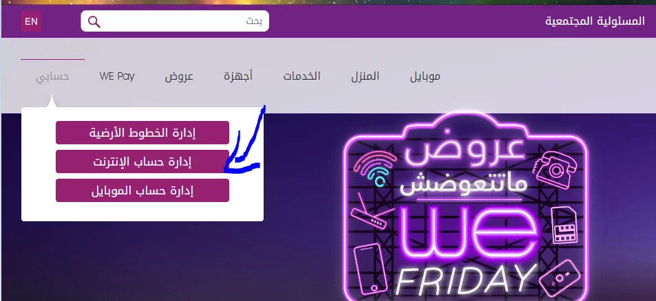 معرفة ميعاد تجديد باقة النت We الأرضي من خلال الموقع الرسمي لشركة We: