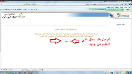 وبذلك تكون قد تمت عملية تسجيل ولي الأمر بنجاح، ونقوم بعدها بالضغط على خيار عودة.