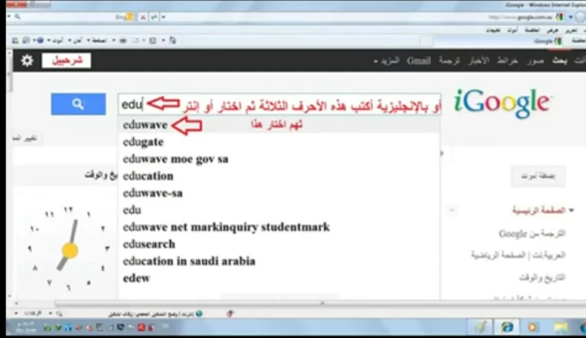 وبطريقة أخرى يمكن كتابة edu بالإنجليزية في خانة البحث بالأعلى ثم اختيار edu Wave وهو أول خيار بالقائمة المنسدلة التي تظهر كما بالصورة.