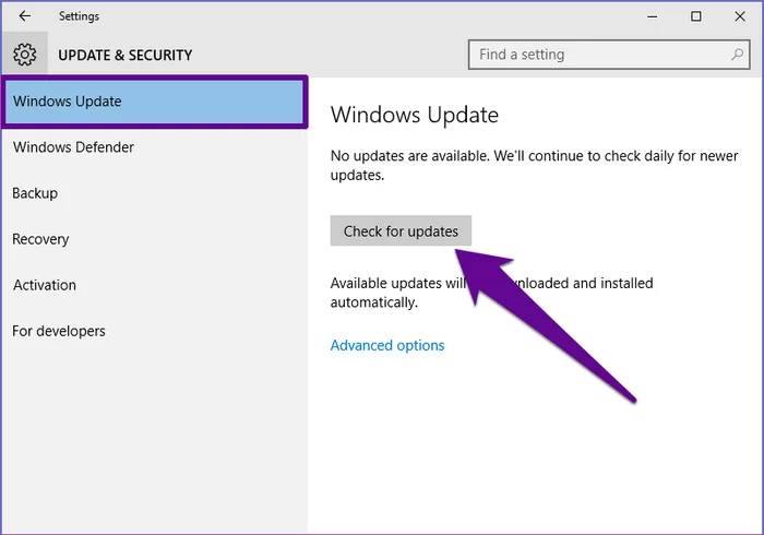 • من خلال الخيارات الموضحة امامك قم بالضغط على Update & Security ثم قم باختيار Check for updates.