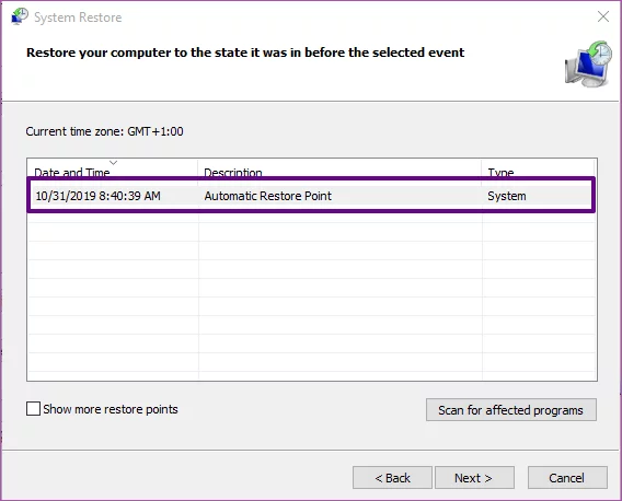 إستخدام نقطة استعادة النظام SYSTEM RESTORE POINT