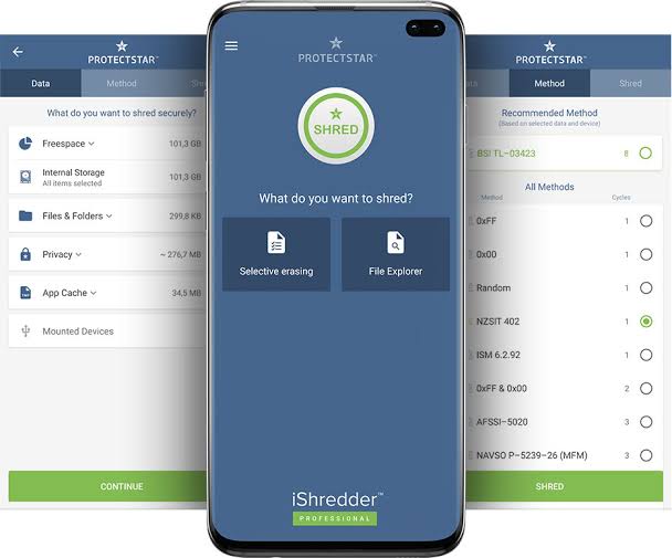 هناك العديد من التطبيقات المتوافرة على متجر جوجل لهذا الغرض، وتعتبر قادرة على حذف الملفات المستعصية في هاتف الأندرويد وأهم هذه البرامج وأشهرها هو تطبيق ishredder ، ويمتاز بكونه قادر على حذف أي ملف مستعصي بشكل نهائي، بحيث لا يمكن استعادته مهما حدث، ويتبع معايير أمان عالية جدًا.