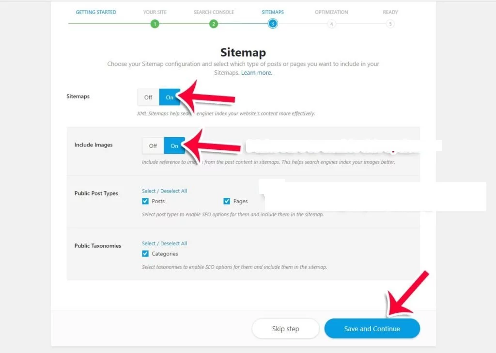 6- بعد الانتهاء من كافة الخطوات الـ5 السابقة سيكون عليك إنشاء خريطة لموقعك على إضافة Rank Math SEO لأنها تعتبر من أهم الخطوات التي ستساعد في بنية المحتوى الخاص بك وتحسين ظهوره على محركات البحث وخاصة جوجل، وما عليك سوى القيام بتشغيل خاصية Sitemap، ثم تأكد من تشغيل أيضًا خاصية “تضمين صورة” لأن فهرسة صورة المدونة الخاصة بك ستساعدك في الحصول على المزيد من الزيارات على موقعك.