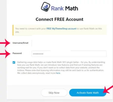 1- بعد تحميل الإضافة على الووردبريس الخاص بك، يفضل أن تقوم بربطها مع حسابك على MyThemeShop ولكن إذا كنت لا تمتلك حسابًا عليه فيمكنك تخطي هذه الخطوة ولكن يفضل أن يكون لديك حساب عليه