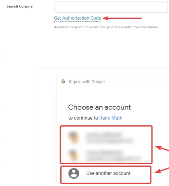 • أولاً ستحتاج إلى النقر على “الحصول على رمز التفويض” Get Authorization Code وذلك من أجل فتح Google OAuth، ومن ثم عليك اختيار حسابك على جوجل المناسب لهذه العملية.