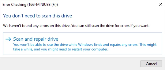 - سيُظهر لك ويندوز خيارات إصلاح الخطأ ، إذا لم تكن هناك أخطاء ، فلا يزال بإمكانك مسح USB لإصلاحه.