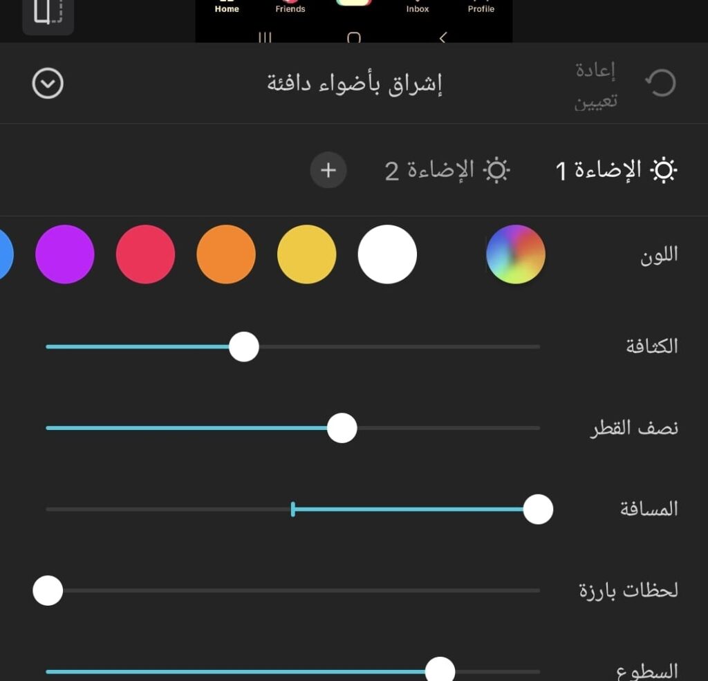 - استخدم المؤشرات لتعديل شدة الإضاءة والزاوية.