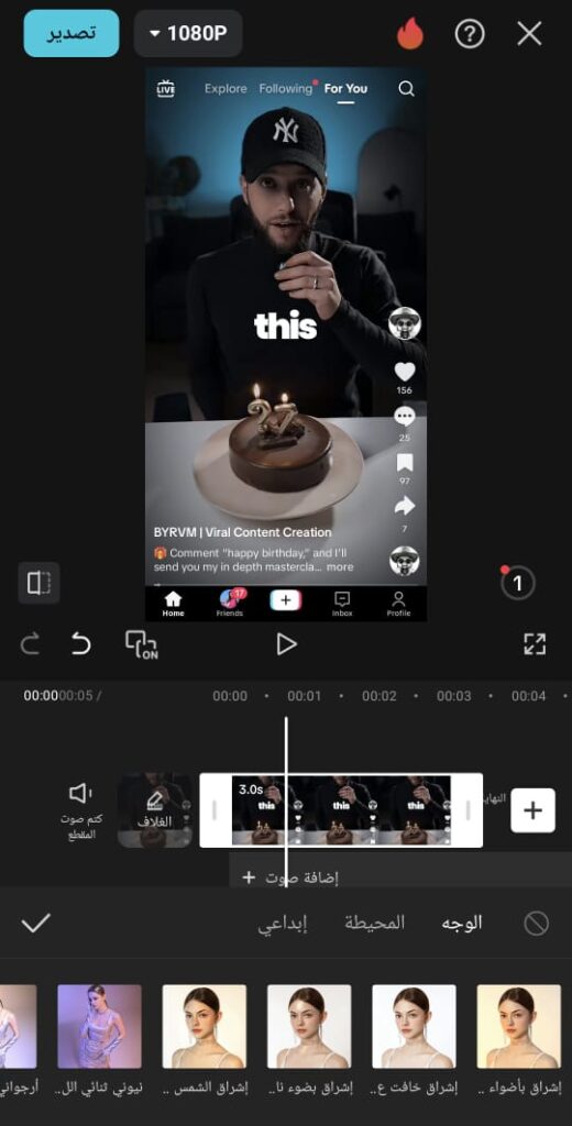 - يمكنك تصدير الفيديو ونشره مباشرة على منصاتك المفضلة.
