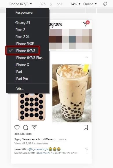 - من خلال القائمة المنسدلة التي تظهر أمامك قم بالنقر على iPhone6 / 7/8، فبالرغم من وجود بعض الخيارات الأخرى إلا أنه من الأفضل اختيار iPhone6 / 7/8.