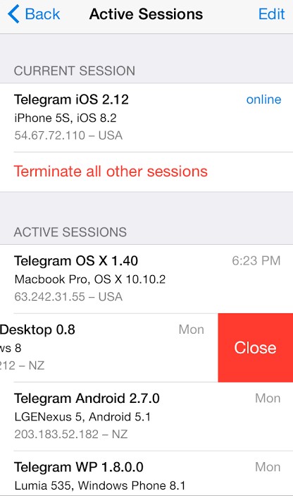يفضل أن تستخدم برنامج تليجرام من جهاز واحد فقط، لكن إن كنت تستخدمه من أكثر من جهاز فقم بتسجيل الخروج من كل هذه الجهات لمنع أي شخص آخر من الاطلاع على حسابك.