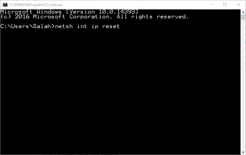 - ستظهر لك لوحة كتابة المهام قم بنسخ “netsh int ip reset” ثم اضغط Enter كما هو موضح بالصورة ادناه .