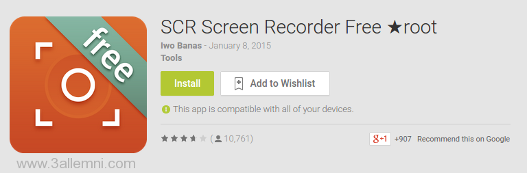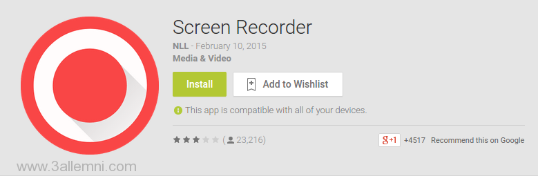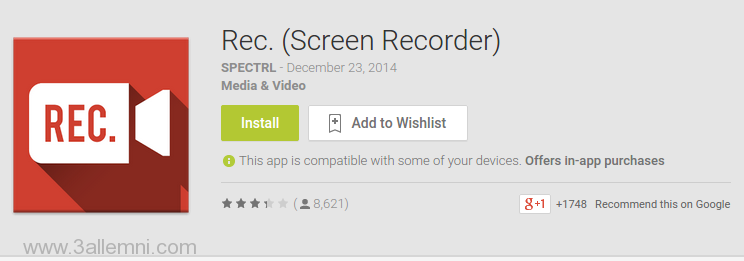 يعد هذا التطبيق رائعا ايضا فى تصوير شاشه الاندرويد فيديو و هو ايضا من التطبيقات المجانيه و لكنه يحتاج ان تقوم بعمل روت للهاتف لكى تسطيع تشغيله  فهو يعمل للهواتف اصدار 4.4 فأعلى و يمكنكم تحميله من المتجر : Rec. “Screen Recorder”