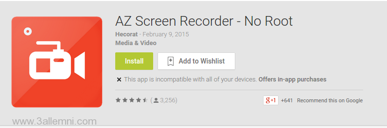 يعد ذلك التطبيقات من افضل التطبيقات المتواجده حيث انه لا يحتاج الى عمل روت للهاتف لا يوجد وقت محدد للتسجيل و توجد علامات مائيه توضع على الفيديو و امكانيه ايقاف التسجيل و تشغيله مره اخرى دون ادنى مشاكل و رغم كل تلك المزايا فهو تطبيق مجانى و يمكنكم تحميله من متجر جوجل : AZ Screen Recorder
