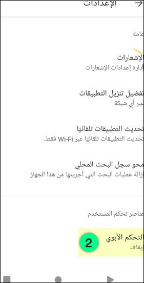 2- قم باختيار من الاعدادات التحكم الابوي كما بالصوره التالية .