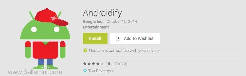 يعتبر تطبيق Androidify واحدا من التطبيقات التى سوف تنال إعجاب المستخدمين حيث من خلال هذا التطبيق يمكنك تصميم شخصيه أندرويد خاصه بك مثل شخصيه نظام أندرويد التى تظهر لك اثناء تشغيل الهاتف .