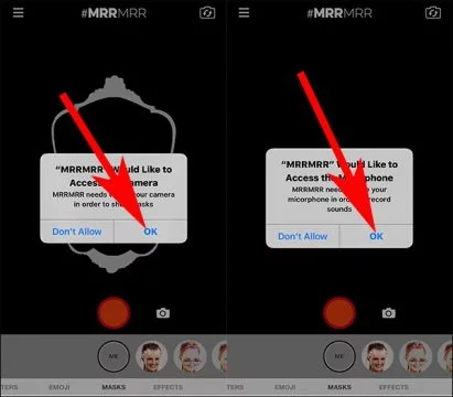 - بعد تحميل التطبيق و تثبيته قم بفتح التطبيق و سوف يطلب من التطبيق صلاحية الوصول الي إعدادات الكاميرا و الميكروفون في هاتفك , قم بإعطائة الصلاحيات لكي يستطيع التطبيق العمل بشكل طبيعي .