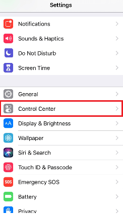 - على هاتف الآيفون الخاص بك قم بالدخول إلى تطبيق الإعدادات Settings، وقم باختيار مركز التحكم Control Center.