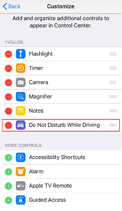 - يمكنك أيضًا سحب وإفلات خاصية Do Not Disturb While Driving إلى قائمة التضمين.