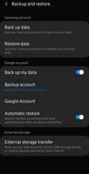 • بعد ذلك قم باختيار Backup and restore وقم بالتأكد من تفعيل خاصية Back up my data.