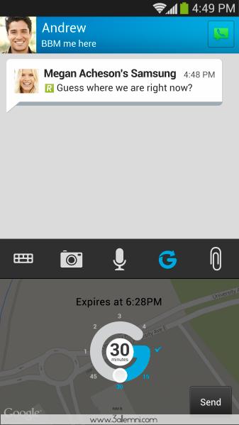 الميزه الثالثه هي مشاركة المكان Glympse بمعني انه يمكنك مشاركة مكانك الان في الخريطه لوقت معين من الزمن ثم بعد ذلك يختفي
