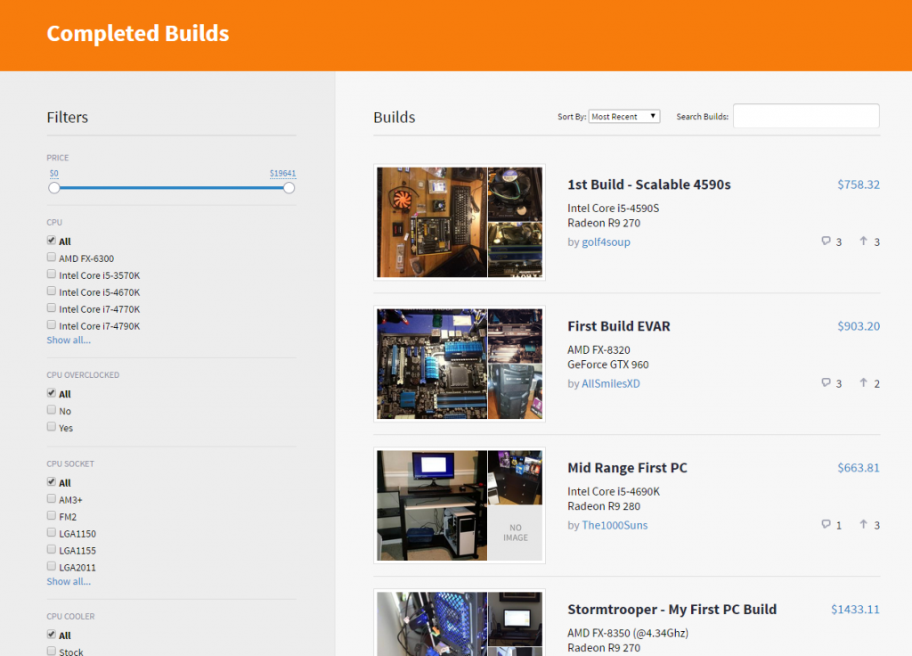 في كثير من الأحيان نستعين من خبرة أصدقائنا من حولنا الملمين بأمور الكمبيوتر وقطع الهارد وير بشكل عام لأن لهم دراية كبيره بهذا الشأن، وهذا ما تقدمه هذه الخدمة بحيث تقوم بإستعراض التجميعات التي قام بها المستخدمين والأعضاء بعد شرائها وتدوينها ع الموقع وبالصور أيضاً وهذا شئ جيد جداً لترى القطع بعد تركبيها مع بعضها البعض ولتقرر ما إن كان الشكل يرضيك أم لا، سواء في اللون أو تصميم القطع وألوان ال RGB وغيرها من الأمور الآخرى.