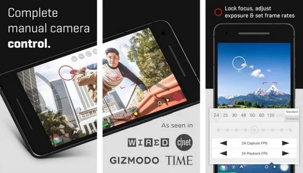 تطبيق “Filmic Pro” هو تطبيق كاميرا جديد نسبيًا على متجر جوجل بلاي وهو مخصص للمصور المحترف ، وهو أيضًا أغلى تطبيق للكاميرا في قائمتنا حيث يأتي “Filmic Pro” مع عناصر تحكم يدوية رائعة للتحكم في التعرض والتركيز وتوازن اللون الأبيض ، يمكنك أيضًا التحكم المباشر في RGB وما إلى ذلك ، كما أن التطبيق يتحسن كثيرًا مع التحديثات المُستمره التى يتلاقها من وقت الى اخر ولكن هذا التطبيق ليس مجانيًا للاستخدام ولكن إذا لم تكن راضيًا يمكنك استرداد أموالك.