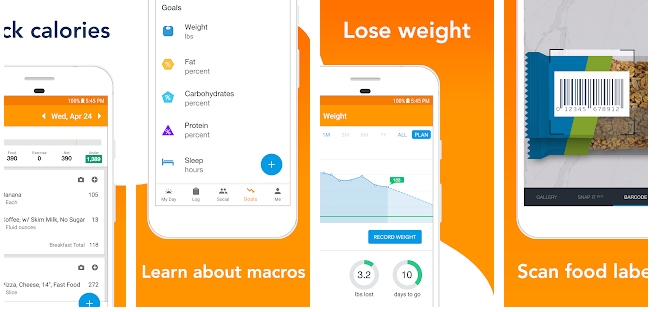و ماسح الباركود المستخدم في مسح الباركود على ما تأكله حتى يقوم بحساب السعرات الحراريه و مع بعض التقارير المفصله و تعقب وزنك و تذكير لميعاد الوجبات بالاضافه الى بعض التمارين البسيطه لحرق السعرات الحراريه و مجله لتسجيل تقدمك و هو متوافق مع بعض التطبيقات الاخرى مثل Google Fit و Samsung Health و Fitbit.
