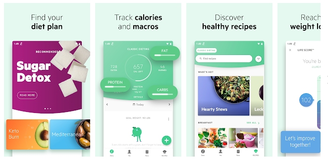 من التطبيقات الاكثر شهرة لاتباع النظام الغذائي الجيد للاندرويد و ما يميز التطبيق هو يوميات الطعام و متتبع الماكرو الذي يمكنك من الوصول إلى الطريق الصحيح لاستهلاك الطاقة باستخدام آلة حاسبة الماكرو و ذلك بمسح الرموز الشريطية ضوئيًا أو أدخلها يدويًا بالاضافه الى بعض الوصفات الغذائية الرائعه مثل الصيام و التخلص من السموم من بعض انواع السكريات و بعض النصائح المتعلقه بالتغذيه الجيده .