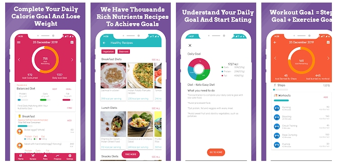 و من خلال مخطط الوجبات الخاص بالتطبيق يمكنك معرفة عدد الوجبات و محتواها و كذلك يحتوي على قاعدة بيانات تضم كميات هائله من الطعام الصحي و المفيد و بالاضافه الى ذلك يمكنك ان تحصل على عدد معين من السعرات الحرارية اليوميه للوصول اليه فهذا هو هدفك و التحدي الخاص بك ، و يضيف لك ايضا بعض التقارير الخاصه بالبروتين اللازم لك و يتيح اضافة وزنك للمقارنة بين الفترات .