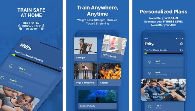 تطبيق Fitify واحد من أفضل التطبيقات لعمل التمارين من المنزل، فهو يستخدم وزن جسمك ويقوم بتمرين عضلاتك للحصول على أفضل جسم رشيق يناسب هيئتك الجسمانيه وذلك بكل تأكيد في خلال أشهر وليست أيام كما من الممكن أن يعتقد البعض، على كل حال التطبيق لا يتطلب التمارين الصعبه والتي بها مغامرة جسمانية، فليس هذا الأمر مع تطبيق Fitify ولكن إذا أخذت التجربة بشكل كامل فسيصبح تطبيق Fitify أكبر إستفادة لك بكل تأكيد، التطبيق به أكثر من 850 تمرينه كما أنه هناك 20 تمرينه مبنيه مسبقاً لتدريبك على بناء العضلات، كما ان التطبيق يشجعك على الإشتراك حصص عمليه للحصول على نتائج أسرع وذلك بفضل الإلتزام وليس شئ آخر، التطبيق مجاني ولكن به مدفوعات مثل السابق.