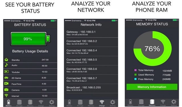 من التطبيقات المفيده للغايه فيما يخص افضل تطبيقات للحفاظ على البطارية لاجهزة ايفون 2020 هو تطبيق Battery Saver – Wifi Analyze فهو يساعدك على توفير معلومات عن حالة البطاريه و حالة قرص الهاتف و ايضا معلومات عديده عن شبكة الواي فاي الخاصه بك و يقوم التطبيق بتنبيهك في حالة استخدم الشبكه احد غيرك و معلومات اخرى عن التخزين و يساعدك على معرفة التطبيقات التي تستهلك البطاريه بشكل اكبر و هو مجاني .
