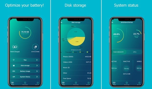من ضمن التطبيقات الرائعه و التي نرشحها مع قائمة افضل تطبيقات للحفاظ على البطارية لاجهزة ايفون 2020 هو تطبيق Full Battery فالتطبيق يقدم لك مهمه اخرى بجانب معلومات حالة البطاريه و الوقت المتبقي لها فهو يقدم معلومات عن مقدار التخزين الذي تستخدمه البيانات الموجوده على هاتفك و هو مجاني .
