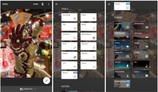 يعتبر هذا التطبيق واحداً من أفضل تطبيقات التعديل علي الصور لكل أنظمة تشغيل الهواتف سواء أندرويد أو iOS و هو يقدم مجموعة لا حصر لها من أدوات و خيارات التعديل علي الصورة بشكل أحترافي و سهل في نفس الوقت , مثل التحكم في ألوان الصورة و أضافة المؤثرات و الفلاتر , كما يقدم مميزات و أدوات متعددة في التأثير علي إضاءة الصورة و التعديل عليها , و ميزة تخفيض تشويش الصورة و مميزات التحكم في تفصيل الصورة و توازن اللون الأبيض .