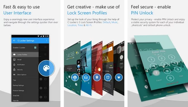 تطبيق C locker خيار آخر لتطبيق قفل الشاشة له شهره واسعة يأتي مع الكثير من المزايا الضخمة كما أنه يأتي مع تشكيلة كبيره من الويدجيت التي يمكنك إضافتها لشاشة القفل الخاصه بك على هاتفك، ولكن التطبيق ياـي مع مزايا محدوده ولكن يمكنك الترقية إلى النسخة الإحترافية مع مزايا اكثر و ويدجات بعدد أفضل وأشكال مختلفه أكثر وأكثر.