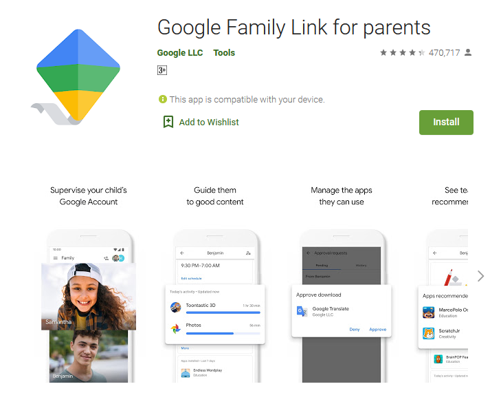 يعد تطبيق Google Family Link واحدا من افضل تطبيقات الرقابة الابوية لاجهزة اندرويد و خاصتا للاطفال تحت سن 13 عام و يقدم التطبيق العديد من المزايا فهو يمكن الاطفال من انشاء حساب لهم على جوجل و يمكن الوالدين من الطفل من استخدام تطبيقات معينه و يوفر التطبيق ميزه وقت النوم و هي تساعد على اطفاء الجهاز لساعات تقوم بتحديدها بنفسك على مدار ايام متتاليه و يساعد التطبيق الوالدين على تحديد عدد الساعات التي يمكن للطفل استخدامها للهاتف في اليوم الواحد بالاضافه الى امكانية قفل هاتف طفلك عن بعد و غيرها من المميزات التي يتم تطويرها يوميا من شركة جوجل .