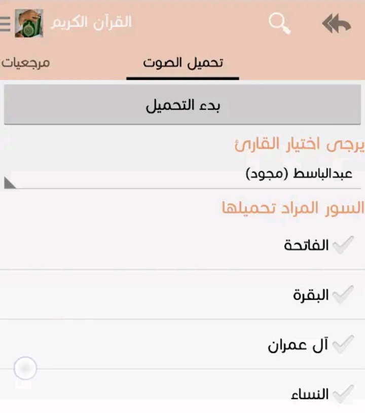 في حالة الاستماع إلى القرآن عبره فالتطبيق يوفر الكثير من القراء الذين يمكن الاختيار بينهم، وأيضًا يمكن تحميل القارئ الذي تريده إن لم يكن متاحًا عبر أي مصدر خارجي للبرنامج.