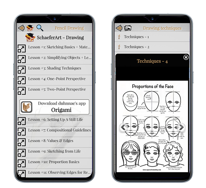 يقدم تطيبق Drawing & Painting الدروس و موارد هامه للمبتدئين و كذلك المحترفين و يحتوي التطبيق على العديد من مقاطع الفيديو التعليميه و كذلك موسيقى مدمجه حتى يمكنك التركيز و الاندماج في عالم الرسومات و يحتوي التطبيق ايضا على الصور و المقالات و دروس حول الرسم بالقلم الرصاص والرسم الزيتي و الأنمي و لكن قد لا تجد واجهة المستخدم منظمه بما يكفي و كذلك الاعلانات موجود بشكل رئيسي و لا يوجد منه نسخه مميزه خاليه من الاعلانات .