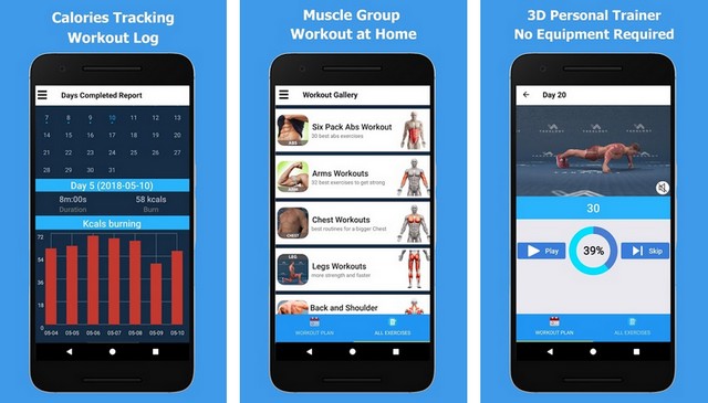 إذا كنت تسعى لممارسة التمارين الرياضية في منزلك بدون الحاجة إلى الذهاب للجيم، فهذا التطبيق سوف يوفر لك ما تحتاجه حيث أنه يوفر لك تمارين مختلفة لعضلات الجسم مثل الذراعين والصدر وعضلات البطن والساقين والكتفين وغير ذلك بدون الحاجة إلى معدات رياضية، ويمكنك من خلال هذا التطبيق تحسين لياقتك البدنية وتعزيز قوة عضلات جسمك من خلال التدرب يوميًا لمدة 10 إلى 15 دقيقة وذلك في خلال شهرين أو ثلاثة أشهر، ويأتي التطبيق مجانًا مع وجود إعلانات وعمليات شراء داخل التطبيق.