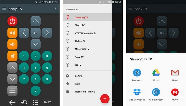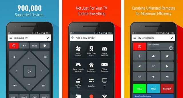 يعتبر هذا التطبيق مميزًا هو الأخر وقد يكون هو الأفضل في هذه القائمة لما يحتوي عليه من مميزات رائعة جدًا. في البداية يتيح لك هذا التطبيق التحكم في العديد من الأجهزة مثل التليفزيون والبروجكتور، وجهاز Set-top box والعديد من الأجهزة الأخرى.
