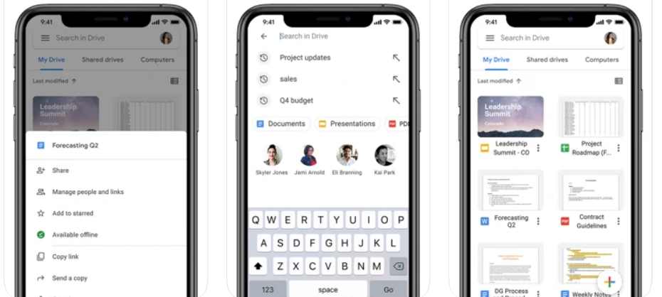 تطبيق التخزين السحابي الرائع الذي يستخدم في النسخ الاحتياطي للصور و الملفات و الكتب الالكترونية و كذلك محادثات الواتساب يمكن تصديرها للاحتفاظ بها احتياطيا على التطبيق و يقدم التطبيق خدمه رائعه و هي امكانية اختيار ملفات للاطلاع عليها حتى في حالة عدم توفر انترنت و يقدم كذلك مساحة 15 جيجابايت مجانية للتخزين مع خطط شراء يمكنك الاطلاع عليها في حال رغبت في ذلك و من خلال حساب على جوجل و رمز المرور الخاص بك يمكنك الدخول الى جوجل درايف الخاص بك من اي مكان و اي جهاز و هو تطبيق مجاني .