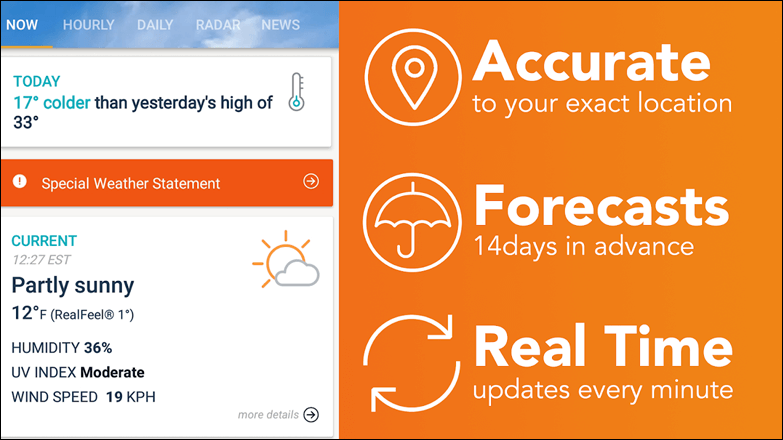 أفضل تطبيقات التي تقدم توقعات دقيقة لحالة الأجواء الجوية ، توقعات الطقس والأحوال الجوية التي يتم عرضها من خلال تطبيقات الأندرويد التي سنعرضها لكم ، هي توقعات تتميز بدقة فائقة بالإضافة إلى ذلك فإن التطبيقات الأتية توفر لكم معرفة وتوقع الأحوال الطقس بداية من الساعتين التاليين للوقت الذي تم استخدام أحد التطبيقات فيه وبذلك يكون التطبيق شديد الدقة فيمكنك معرفة الاحتياطات الضرورية قبل الخروج من خلال التطبيق كما توفر لك أيضا معرفة أحوال المتوقعة لباقي اليوم والأيام المقبلة مع الكثير من الرسومات البيانية المتعلقة بتلك التوقعات لمعرفة اتجاه تغير الطقس سواء للحرارة أو البرودة .