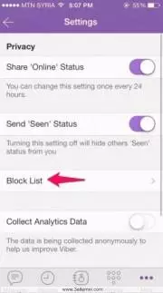 كيفية حظر رقم او جهات الاتصال في Viber لـ iOS