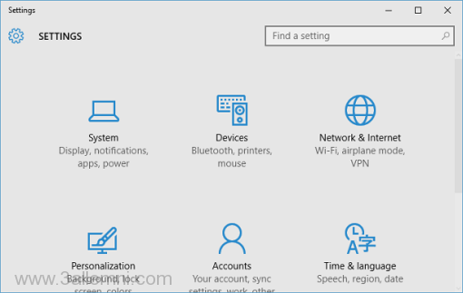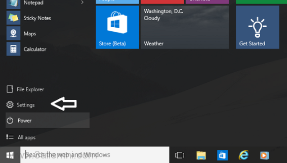 - الذهاب الى الاعدادات الخاصه بويندوز 10 “Settings” و يمكنك العثور عليها من خلال كتابه “Settings” فى شريط البحث